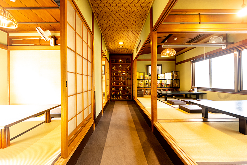 1階には掘りごたつの個室、堂島川を眺められるテーブル席がございます。2階はお座敷があり、最大12名の個室としてもご利用いただけます。また夜は目の前にある中央公会堂と鉾流橋のライトアップ、春には桜、冬にはクリスマスイルミネーションをお楽しみいただけます。
