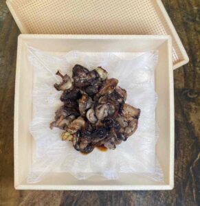 当店ではお持ち帰りの容器は主に小島商店のウッドネット折Ⓡを使用しております。